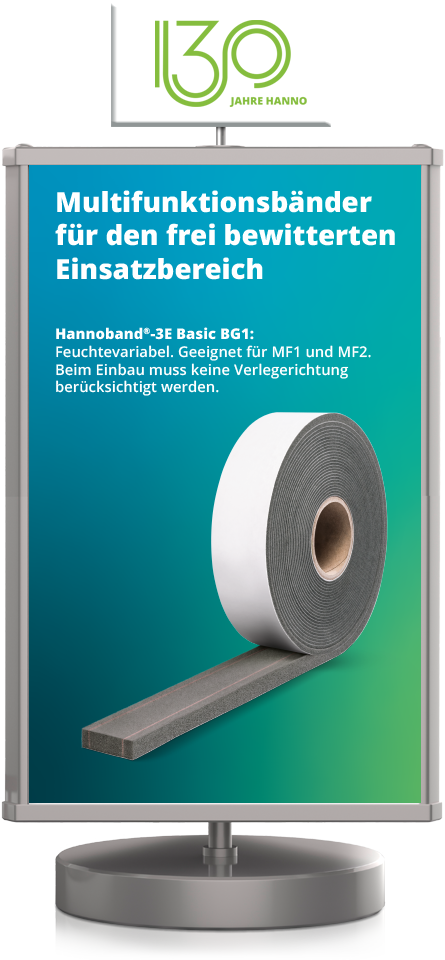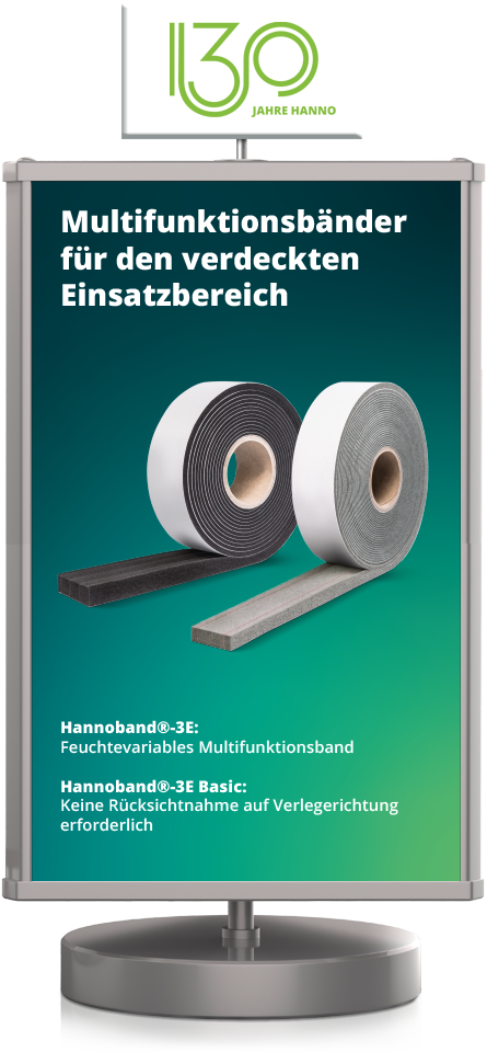 Hannoband®-3E Basic ist nicht dauerhaft witterungsbeständig und für verdeckte Anwendungen vorgesehen.